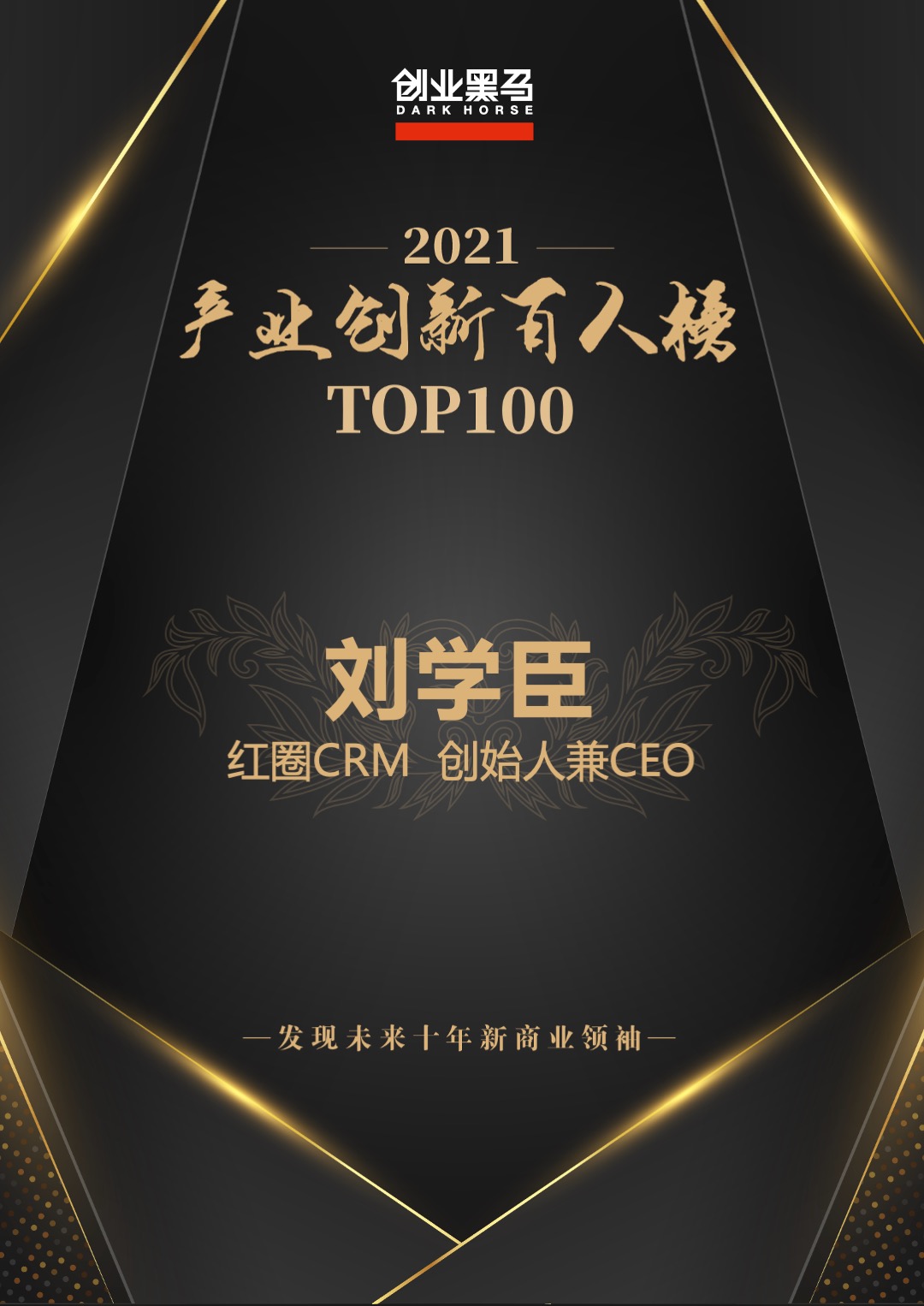 紅圈CRM創始人劉學臣入選《中國產業創新百人榜》