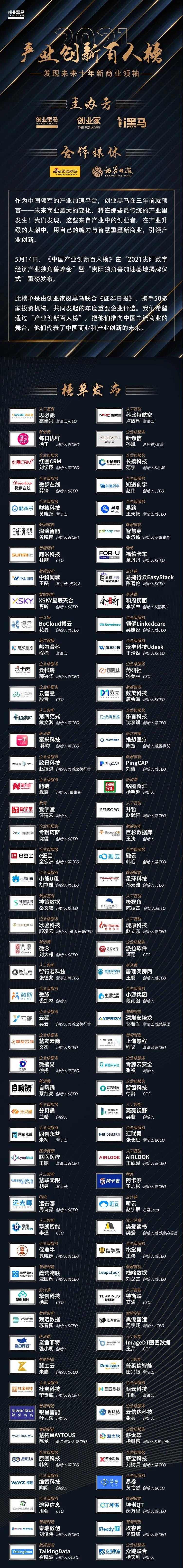 《中國產業創新百人榜》是由創業家&i黑馬聯合《證券日報》、環球網、新浪財經、財聯社旗下科創板日報,攜手50多家知名投資機構,共同發起的年度重要創業家評選,旨在尋找產業中最具代表性的“產業創新推動者”,并將它們推上數字化時代的舞臺中央,展示其獨特價值。