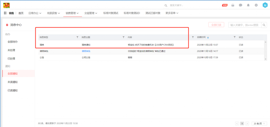 1) 理單頁面顯示及邏輯調整,單獨顯示待理單數據和按理單階段顯示全部銷售機會,理單后數據直接顯示到指定的理單階段;