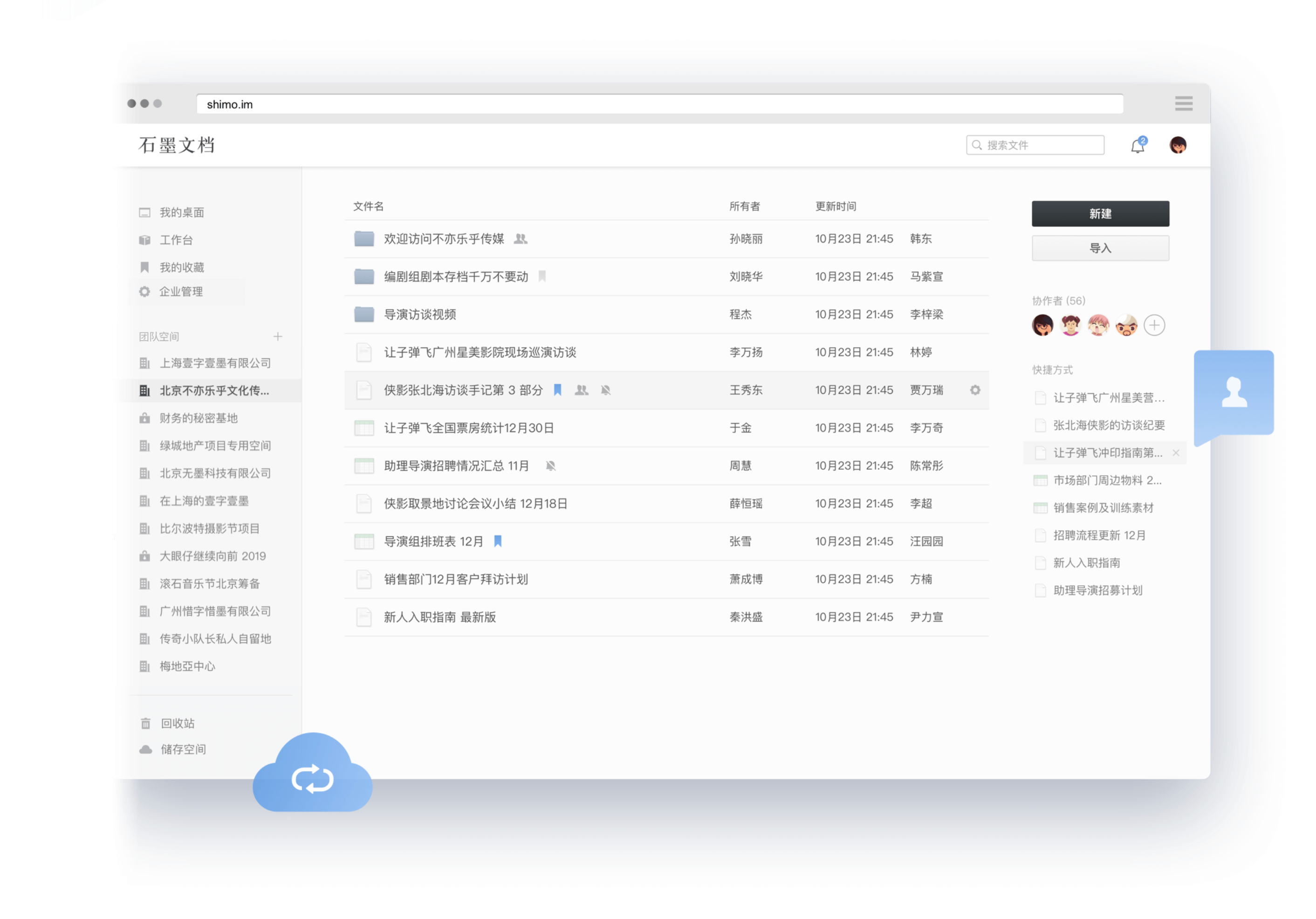 石墨團隊空間,提供企業云盤功能,支持上傳大多數格式文件,并支持 Office、pdf、圖片、音視頻、txt、markdown