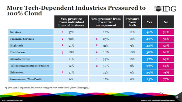 IDG?2018年企業(yè)云研究報告,73%的企業(yè)“處于云中”