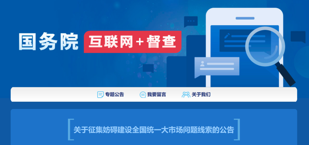 9月25日,國(guó)務(wù)院辦公廳發(fā)布《關(guān)于征集妨礙建設(shè)全國(guó)統(tǒng)一大市場(chǎng)問(wèn)題線索的公告》。公告明確,為貫徹落實(shí)《中共中央 國(guó)務(wù)院關(guān)于加快建設(shè)全國(guó)統(tǒng)一大市場(chǎng)的意見(jiàn)》,推動(dòng)解決妨礙建設(shè)全國(guó)統(tǒng)一大市場(chǎng)的突出問(wèn)題,國(guó)務(wù)院“互聯(lián)網(wǎng)+督查”平臺(tái)從即日起面向社會(huì)征集七個(gè)方面的問(wèn)題線索和意見(jiàn)建議: