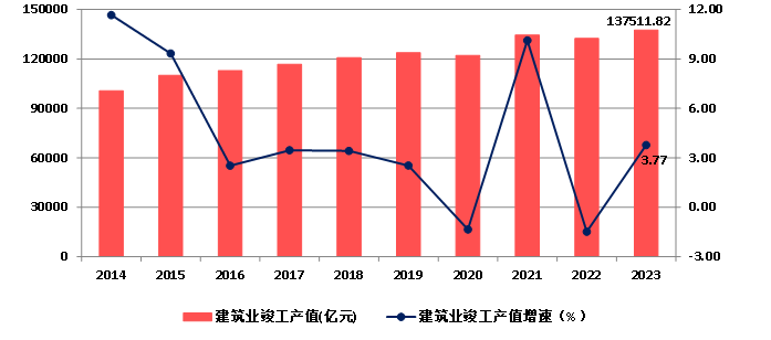 圖3 2014-2023年全國建筑業(yè)總產(chǎn)值及增速