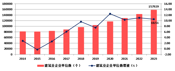 圖7 2014-2023建筑業(yè)企業(yè)數(shù)量及增速