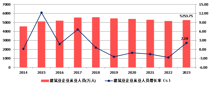圖6 2014-2023年建筑業(yè)從業(yè)人數(shù)增長情況