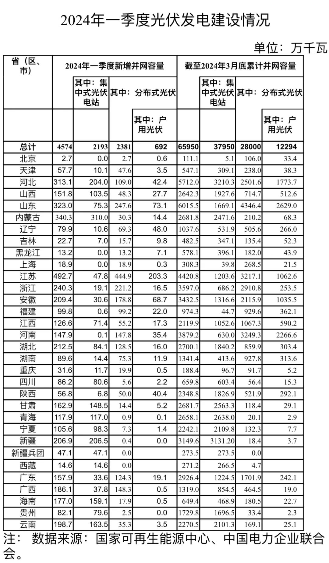 5月6日,國(guó)家能源局公布2024年一季度光伏發(fā)電建設(shè)情況。