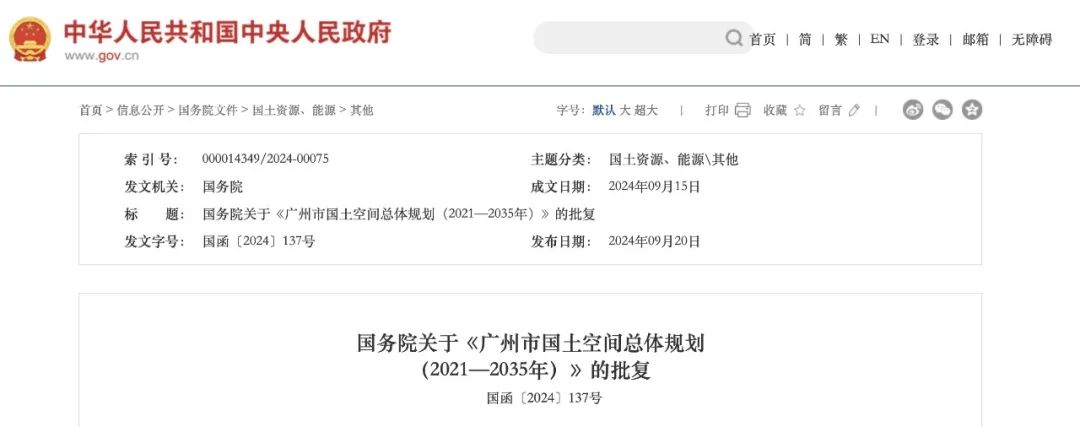 行業(yè)政策?|?國務(wù)院批復!廣州市國土空間總體規(guī)劃!